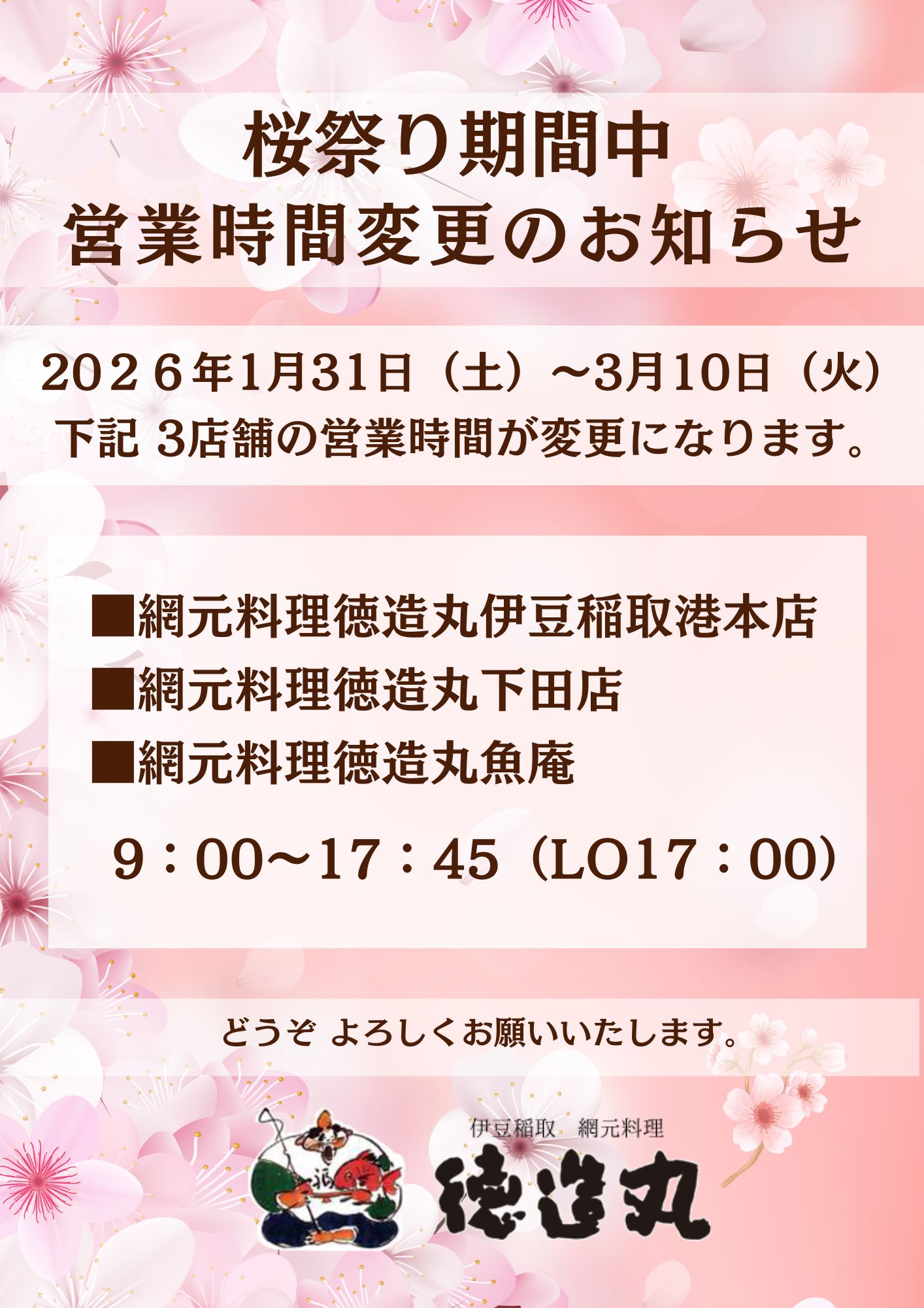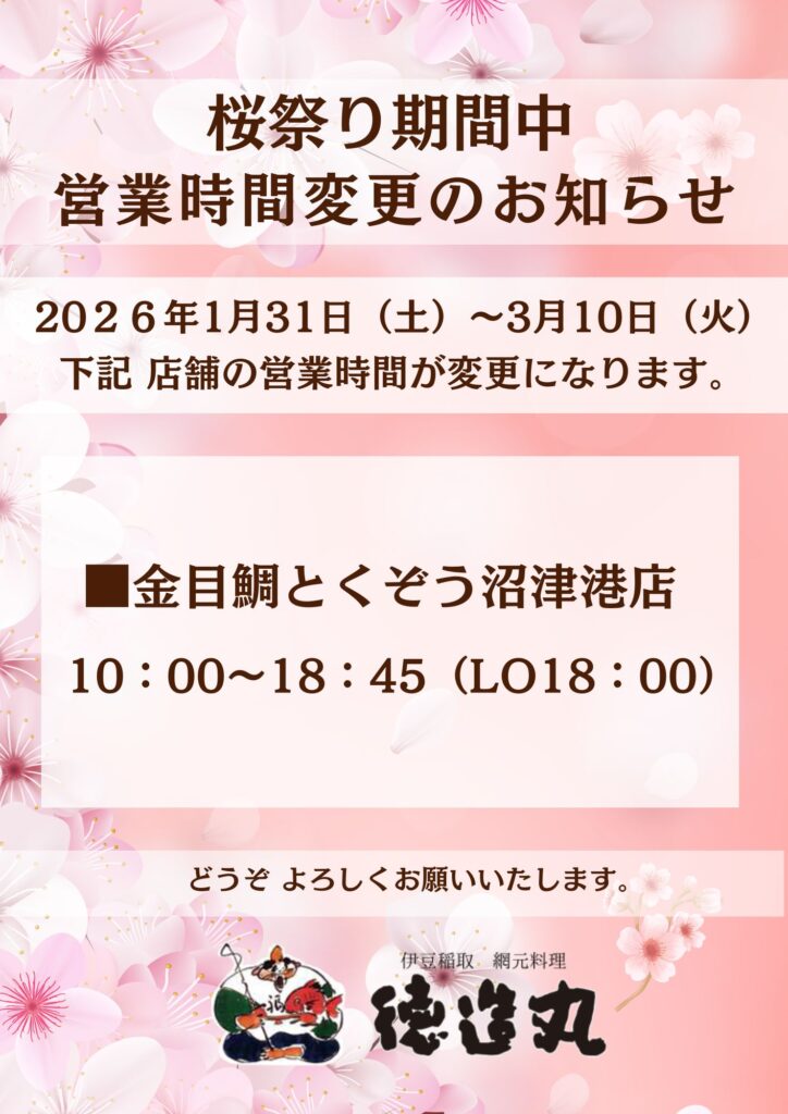 \\ 桜祭り期間中 営業時間変更のお知らせ//
