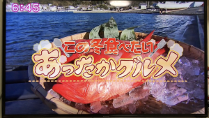 特集“今食べたい!キンメダイしゃぶしゃぶ”にて放映されました。
